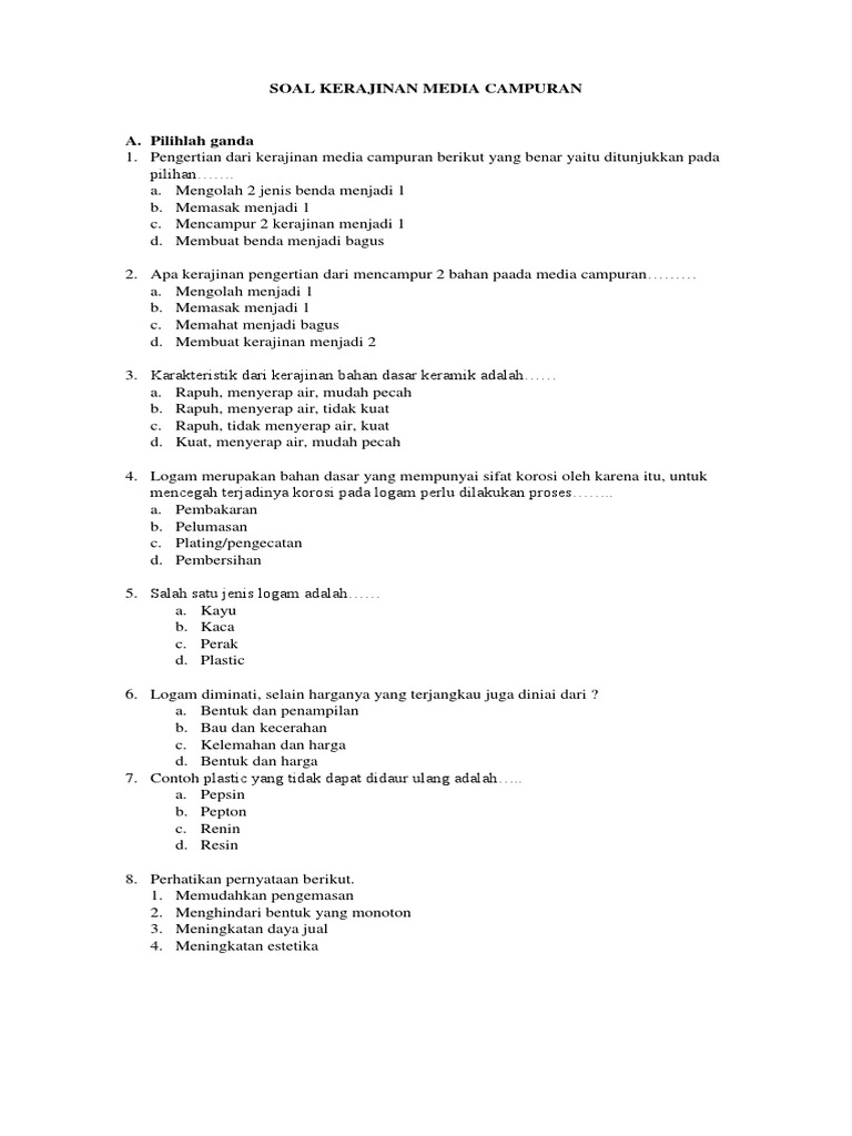 Contoh soal pilihan ganda kerajinan berbasis media campuran. Maybe you would like to learn more about one of these? We did not find results for: Check spelling or type a new query.